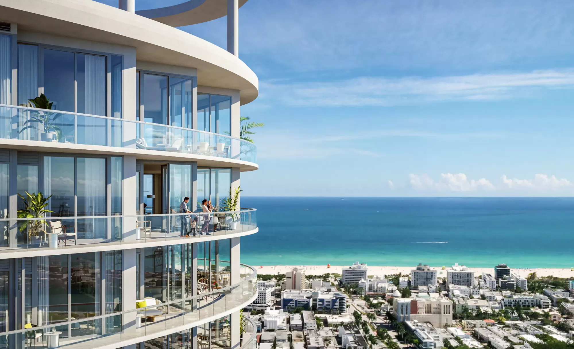 BEACH LIVING WITH AN INCOMPARABLE BACKDROP Five Park’s elliptical floor plans serve to optimize dweller’s access to abundant natural light and expansive views of the city, water, and park below while also opening visual access in communal areas, corridors, and accessible terraces. Verdant and lush terraces bring earth to sky, but they also help modulate the building’s heating and cooling, adding a layer of smart technology to this well-considered ecosystem. Resourceful techniques improve the building’s approach to water quality, water management, and heat load.
